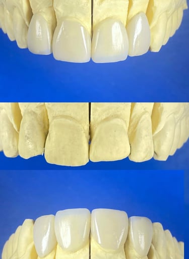 Compreende restaurar sorrisos com lentes de contato, restaurações estéticas em resina composta